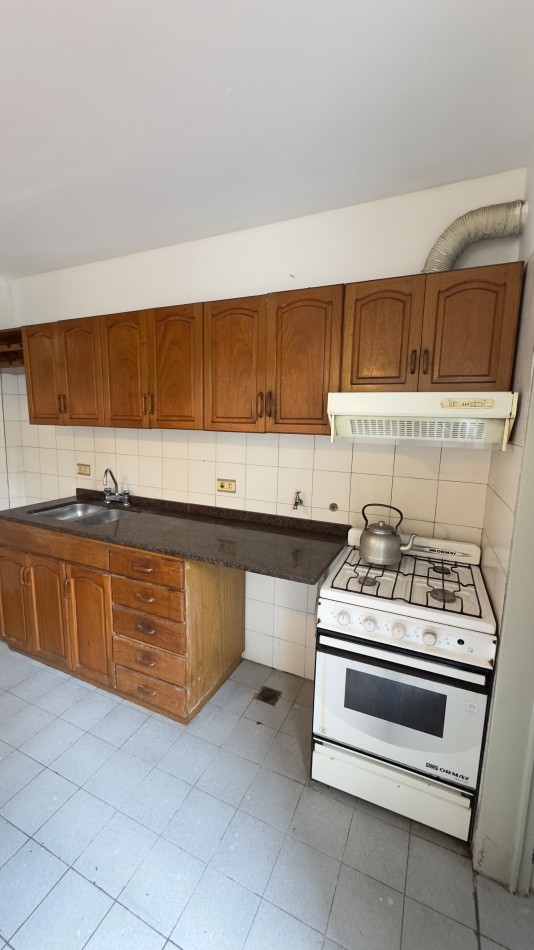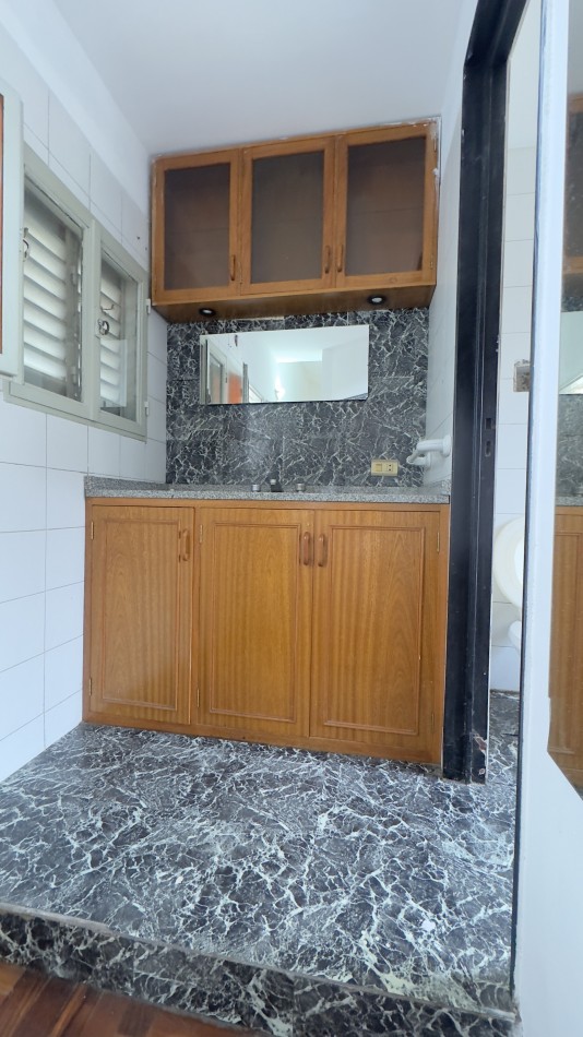 Se alquila departamento de un dormitorio, living - comedor, cocina, 2 baños, patio propio con asador. Excelente ubicación.