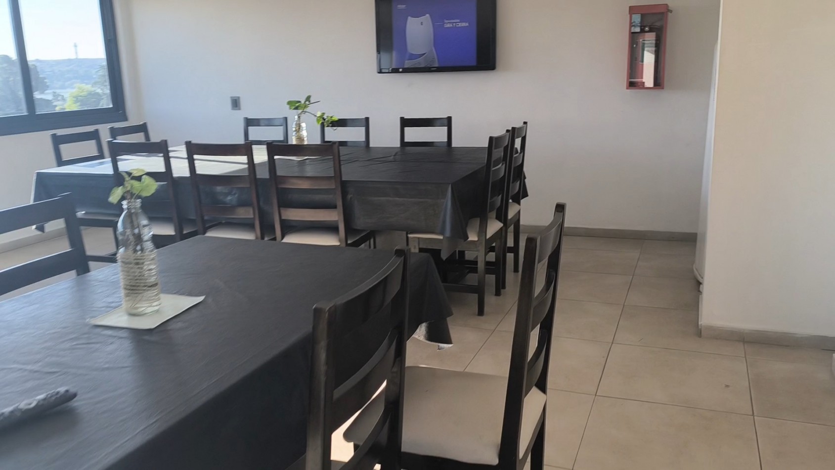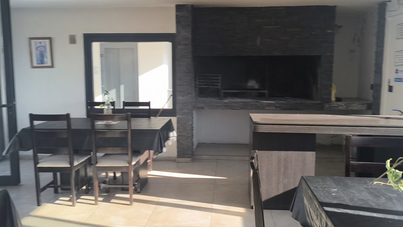 Quincho totalmente equipado (asador, heladera, TV, calefacción, mesas y sillas)