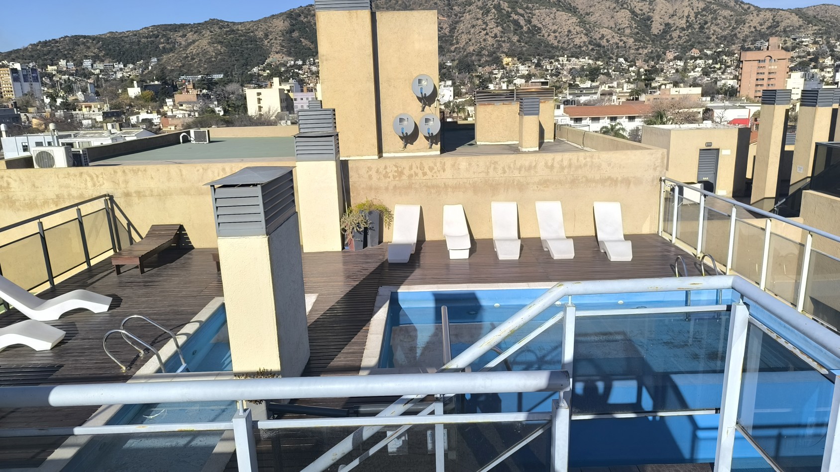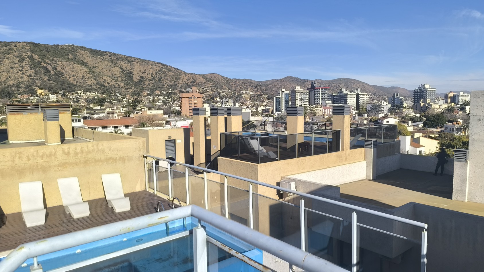 En terraza: 2 piletas con camastros y vistas panorámicas